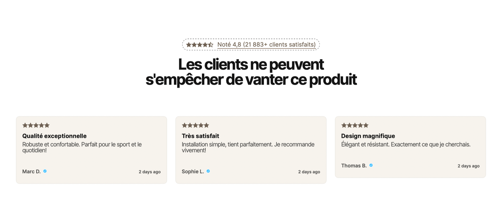 Matériaux premium durables et testés pour résister à l'usage quotidien.